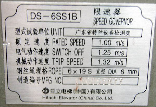 日立无机房限速器 型号 DS-6SS1B 1.00M/S